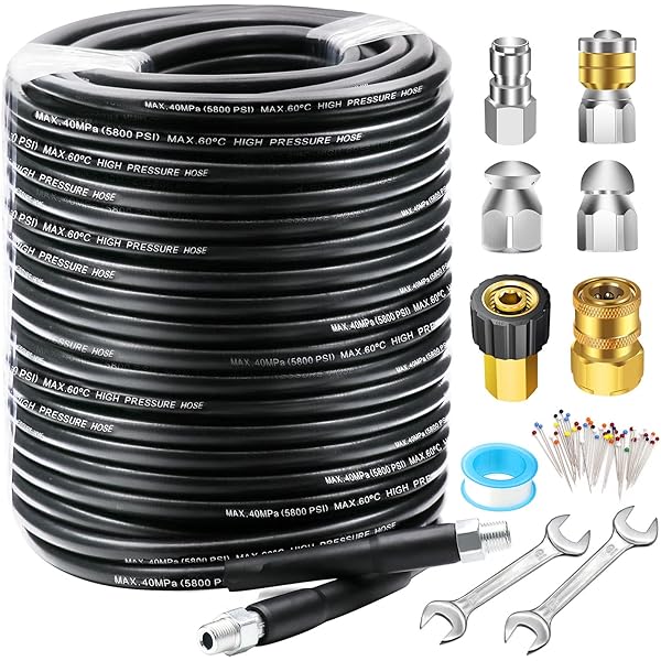 Amazon Com Sewer Jetter Kit For Pressure Washer 150 Feet Hose 1 4 Inch Drain Cleaning Hose Button Nose Rotating Sewer Jetting Nozzle Sewer Jet Kit For Pressure Washer Jetter Hose 4 5 5 5 4000 Psi